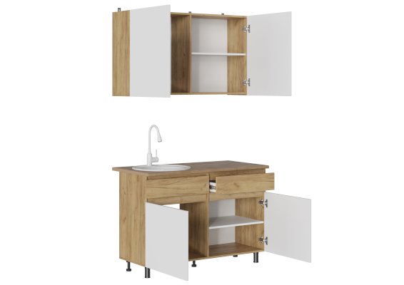 • 1 навесной шкаф (1200 × 704 × 286 мм) с полками и местом для посудосушителя (приобретается отдельно).