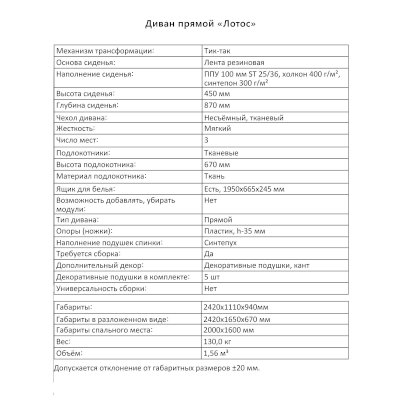 Диван Лотос (Аквилон) продается в интернет-магазине mebelin-dmitrov.ru по цене 77 587 руб. Есть доставка по Дмитрову и Московской области. Возможность подъема на этаж и сборки уточняйте у менеджера по телефону 8(800)505-27-11.