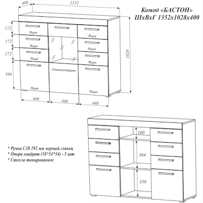Комод Бастон (Эра) продается в интернет-магазине mebelin-dmitrov.ru по цене 13 534 руб. Есть доставка по Дмитрову и Московской области. Возможность подъема на этаж и сборки уточняйте у менеджера по телефону 8(800)505-27-11.